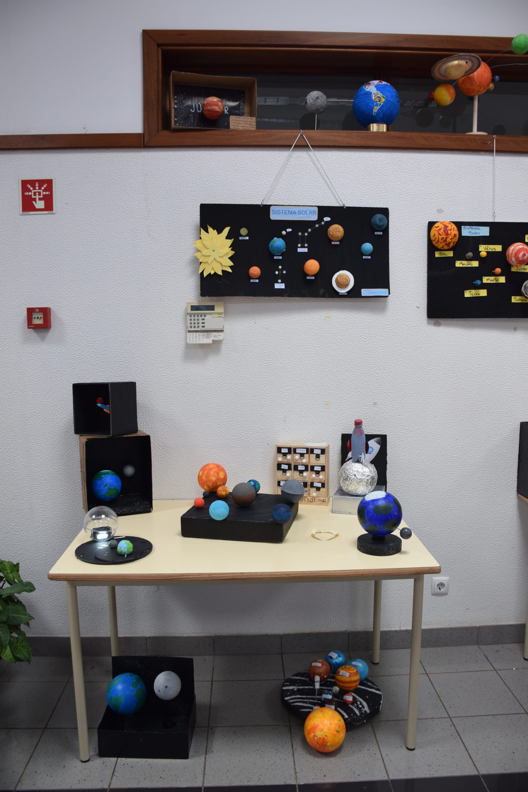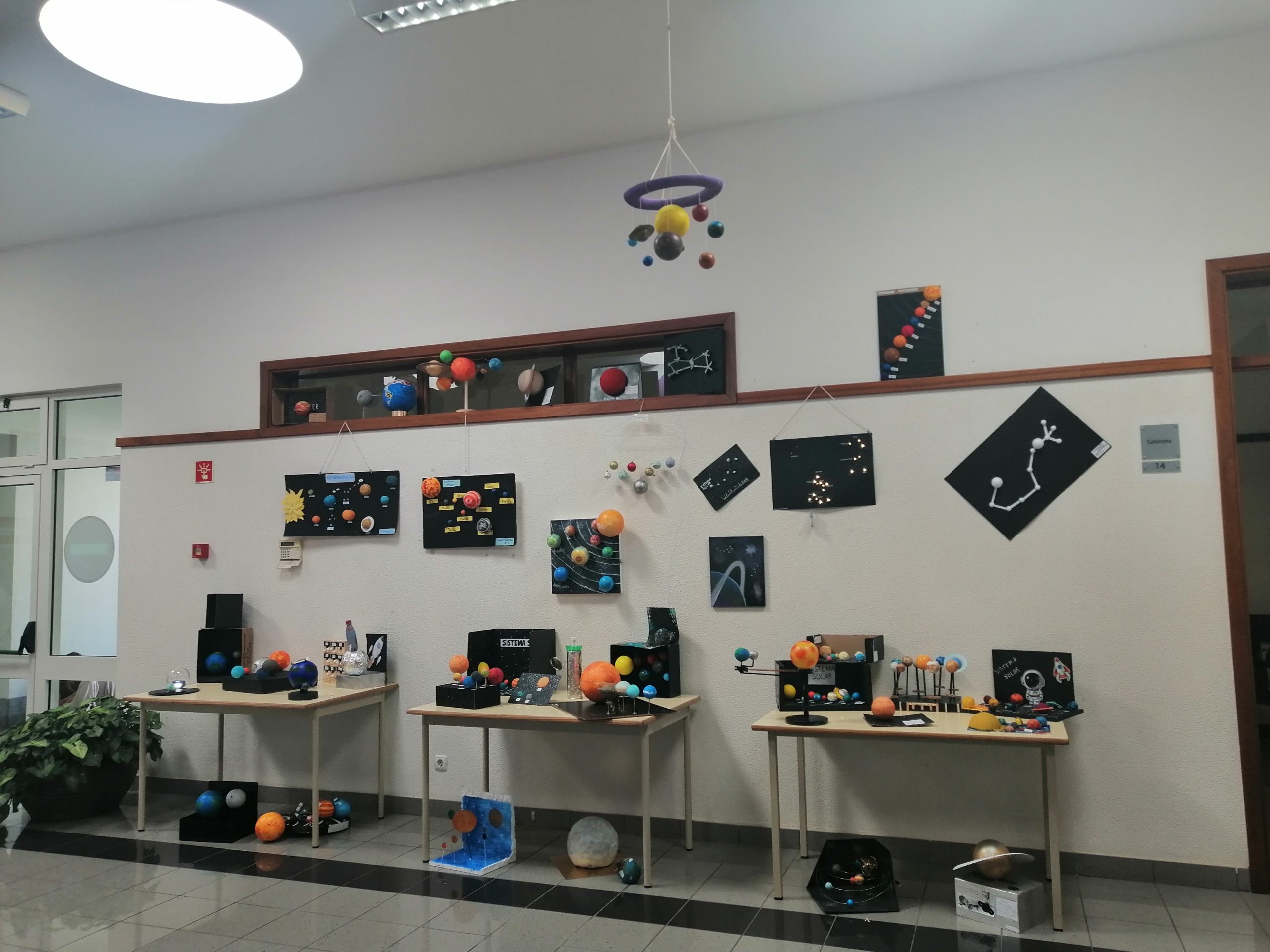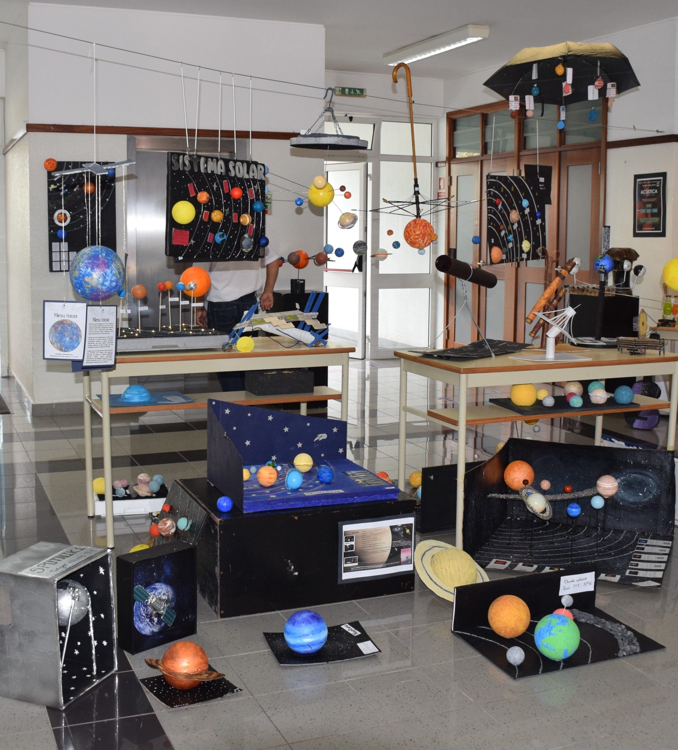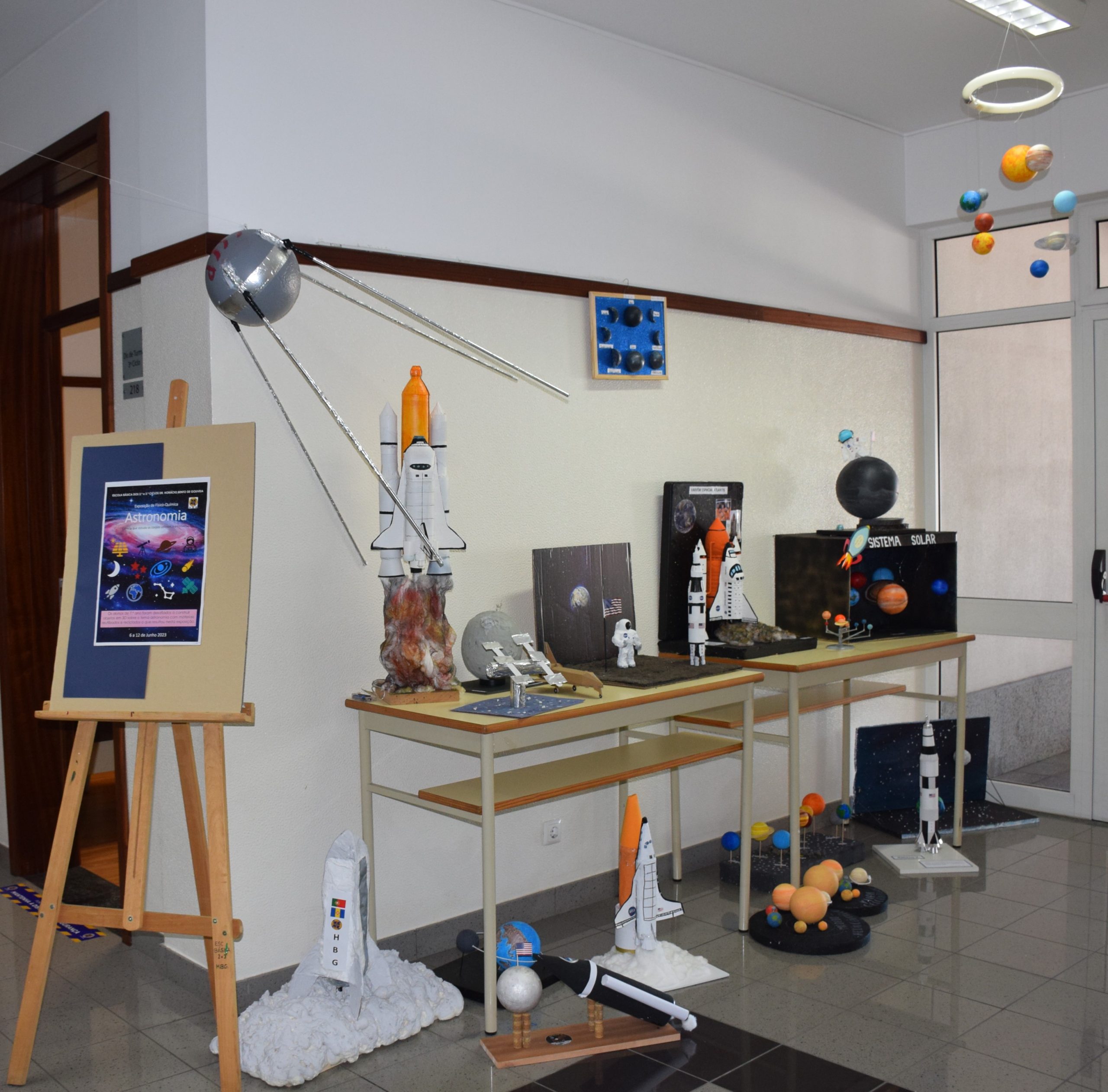 Nos dias 6 a 14 de junho, decorreu uma exposição dos trabalhos dos alunos de 7.º ano subordinada ao tema Astronomia, que faz parte dos conteúdos programático da disciplina de Físico-Química. O desafio foi a construção de objetos em 3D com materiais reutilizados e reciclados.