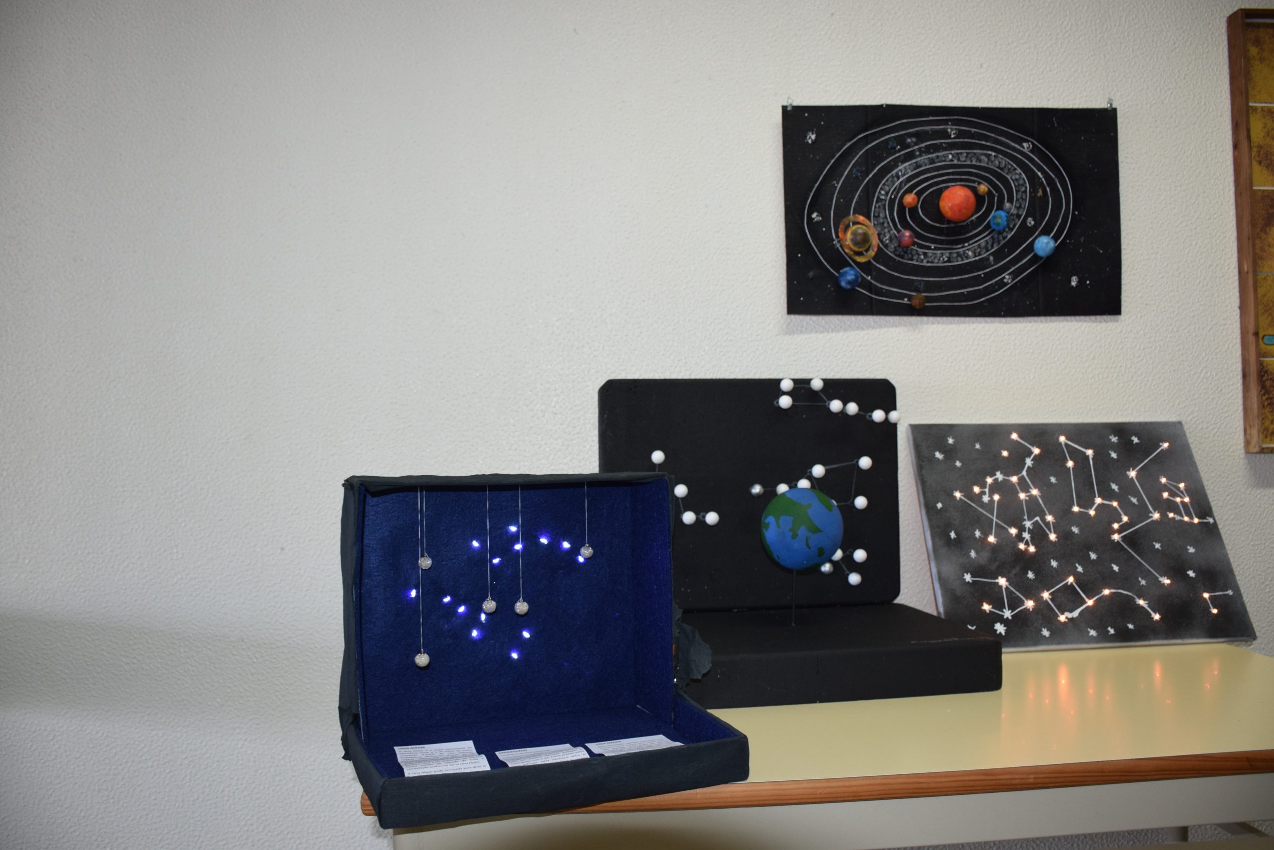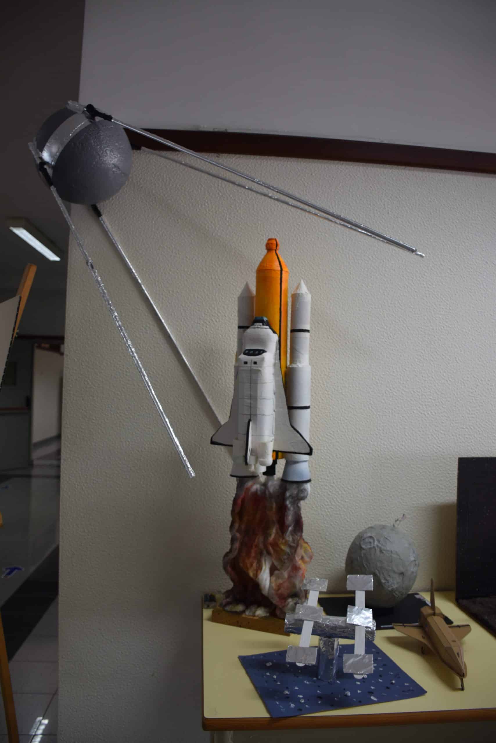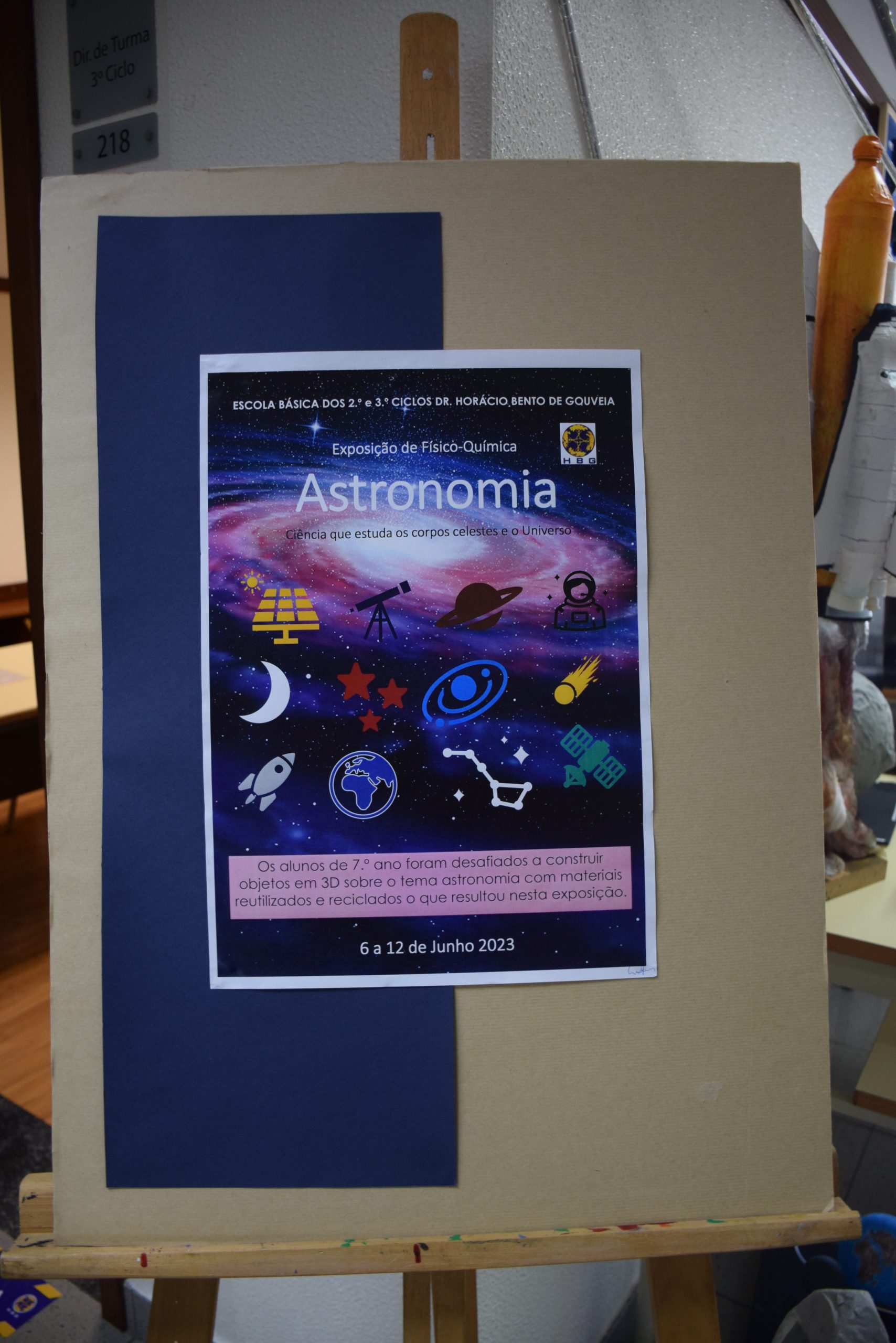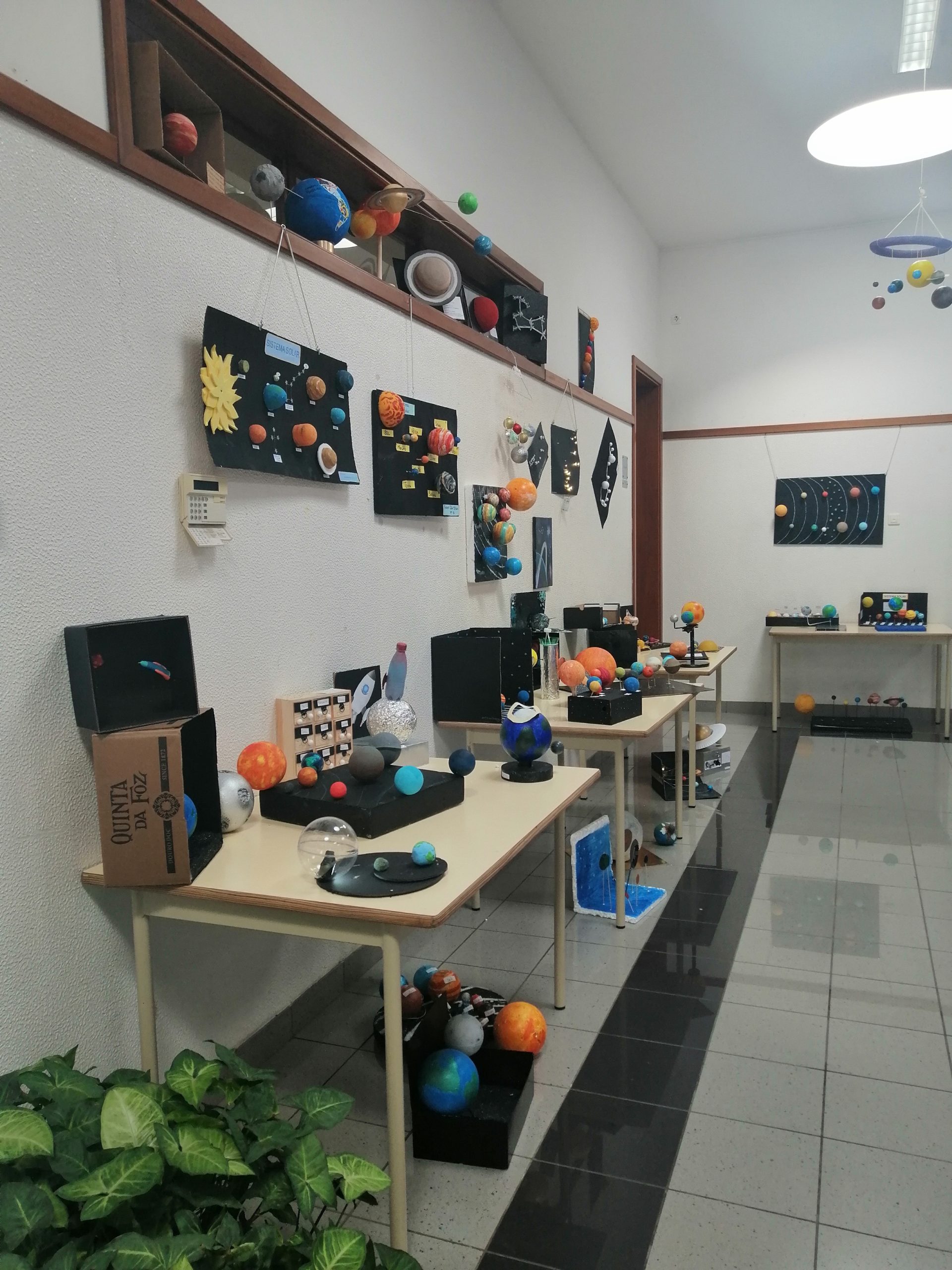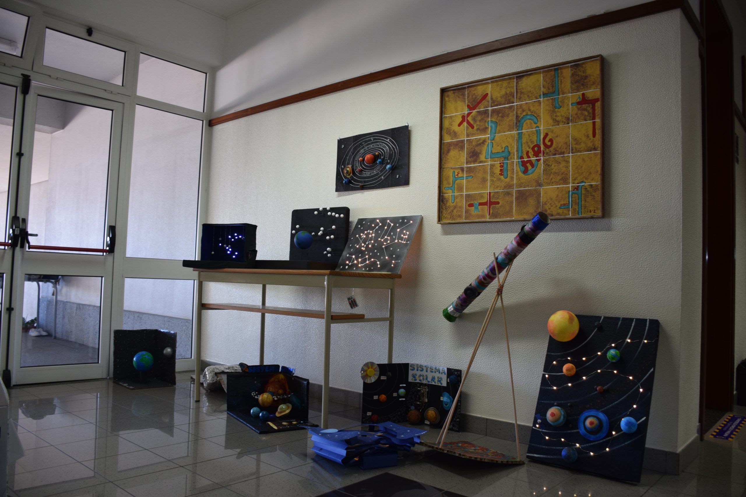 Nos dias 6 a 14 de junho, decorreu uma exposição dos trabalhos dos alunos de 7.º ano subordinada ao tema Astronomia, que faz parte dos conteúdos programático da disciplina de Físico-Química. O desafio foi a construção de objetos em 3D com materiais reutilizados e reciclados.