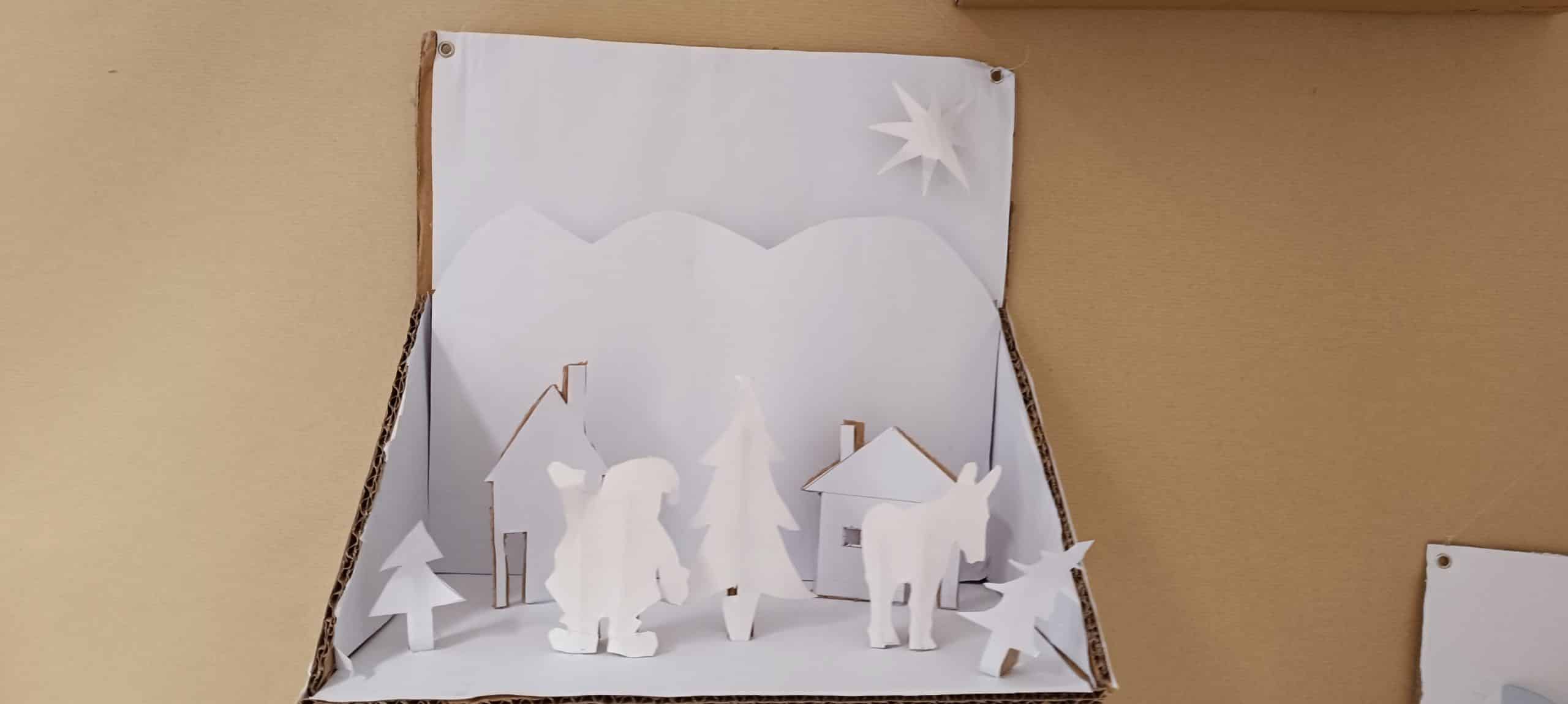 Para dar continuidade às festividades, não poderia faltar o tradicional presépio! Através de silhuetas e planos, foram construídos dioramas também em cartão, e dispostos de modo a serem observados através da janela; uma metáfora visual dado que o Natal é no fundo, uma janela para o mundo. Misturam-se culturas e tradições, conceitos e ornamentos. O resultado é uma comunicação rica e de valorização do ser humano, enquanto ser em constante evolução, num espírito de comunhão e convívio.