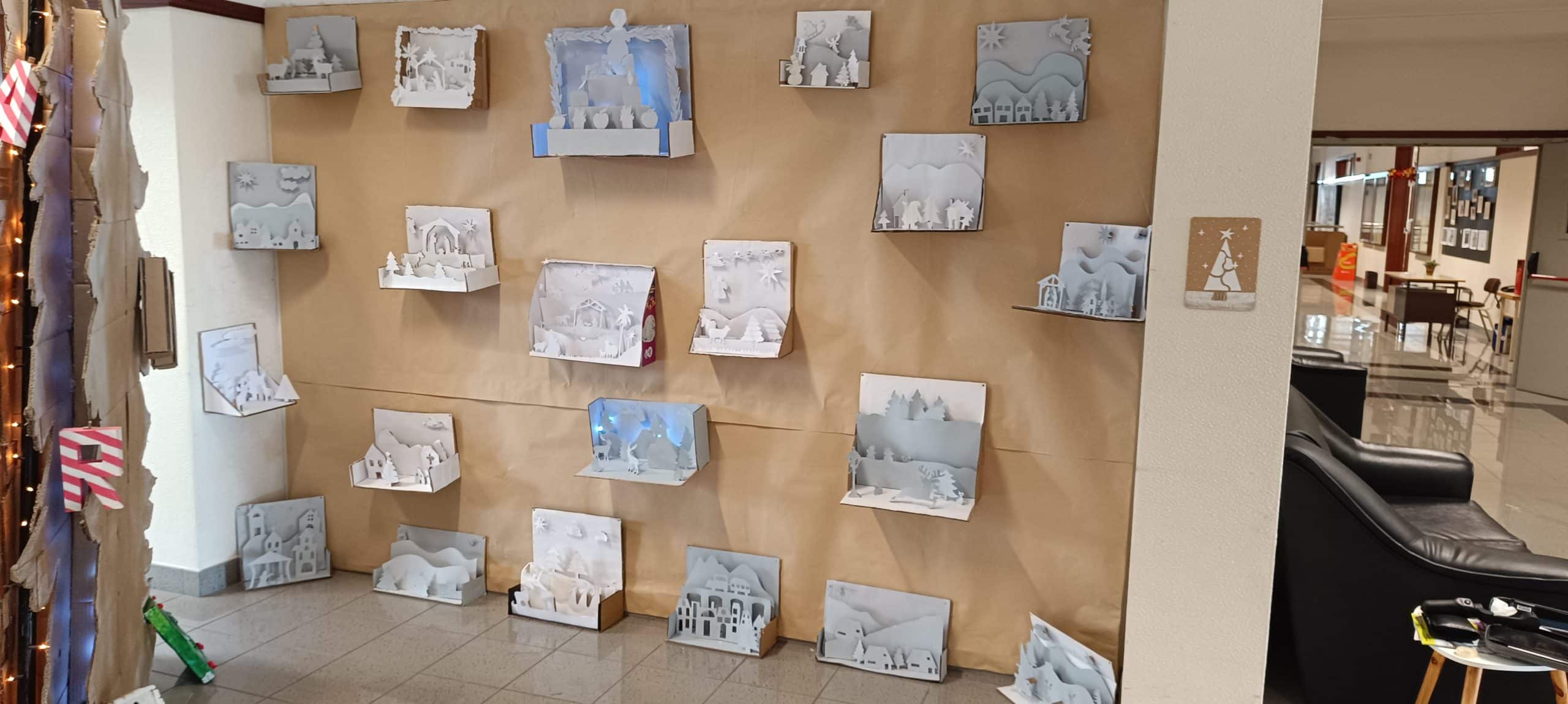 No âmbito das festividades de Natal, realizadas na nossa escola, o grupo 600, grupo das artes visuais, optou por apresentar uma instalação no piso 2 . Esse espaço artístico teve como tema “A magia do Natal”, num contexto de sustentabilidade.