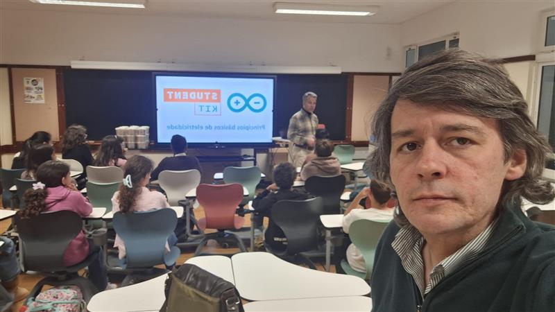 No dia 13 de março, realizou‑se, na Sala do Futuro, uma aula prática e teórica para o 6.º ano de Educação Tecnológica, dedicada à exploração do Arduino, dos princípios fundamentais da eletricidade e da construção de circuitos elétricos . A sessão teve como objetivo aproximar os alunos da tecnologia e da experimentação prática, permitindo‑lhes compreender, de forma concreta, como a eletrónica básica pode ser aplicada em projetos reais. A aula começou com uma introdução teórica sobre eletricidade, abordando conceitos essenciais como tensão, corrente e resistência. Foram apresentados exemplos do quotidiano para facilitar a compreensão e discutiu‑se a importância da segurança ao trabalhar com componentes elétricos. Em seguida, explicou‑se o papel do Arduino enquanto microcontrolador: um pequeno dispositivo programável que permite controlar sensores, LEDs e outros componentes eletrónicos, sendo amplamente utilizado em projetos educativos e de prototipagem.