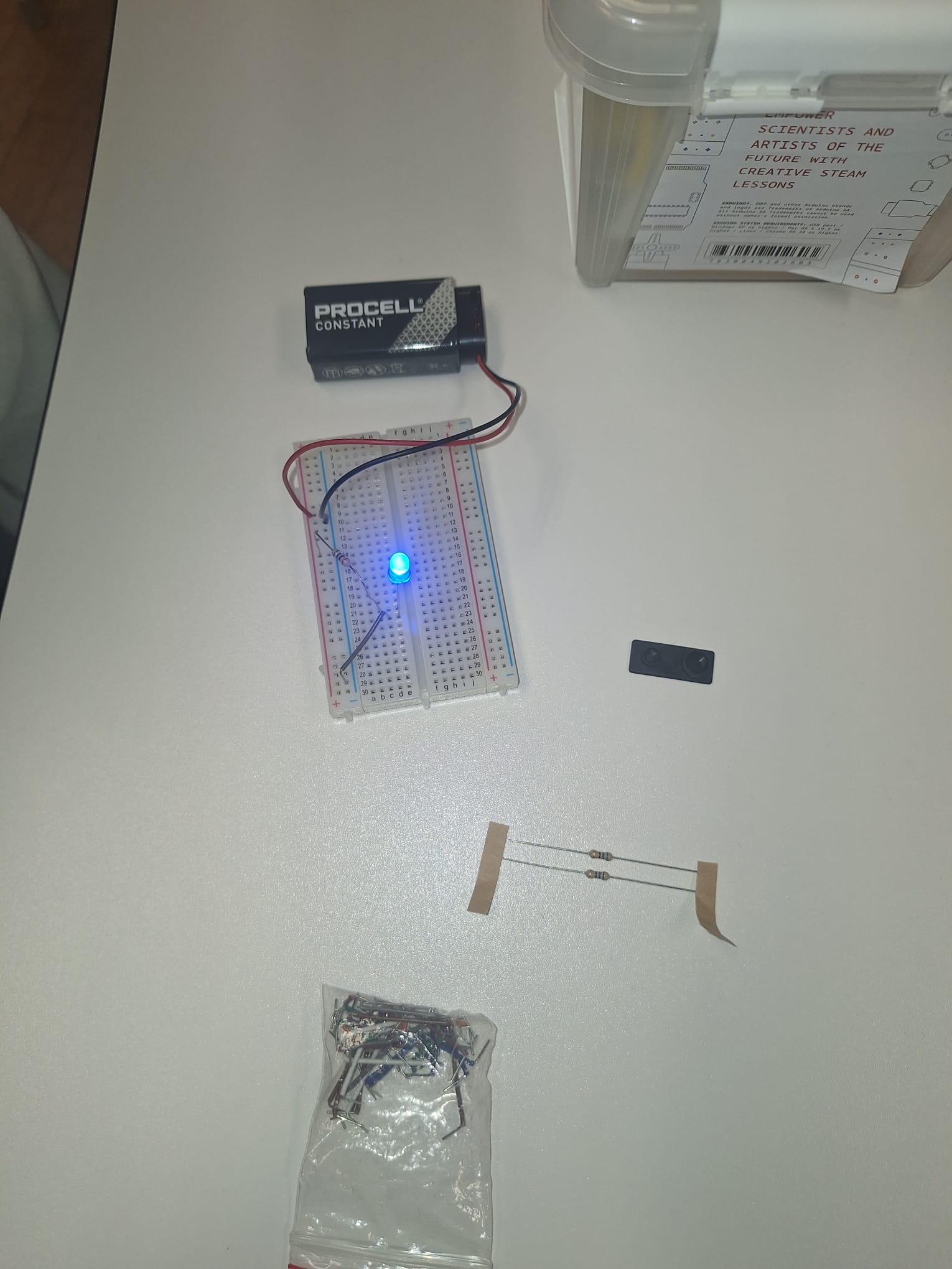 • Circuito em paralelo, onde cada componente tem o seu próprio caminho para a corrente. Neste caso, analisaram como a intensidade luminosa dos LEDs se mantém constante, mesmo com vários componentes ligados.