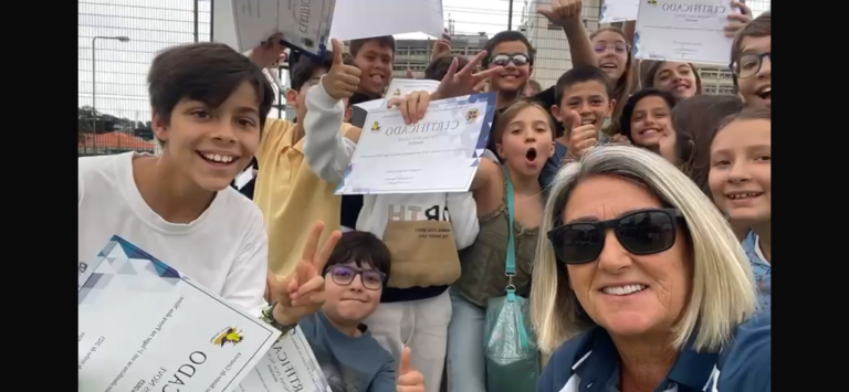 Assistimos às apresentações de quatro números: dois de canto e dois de dança protagonizados por alunas participantes no Concurso de Talentos, Grupos de Dança do 5º3 e, ainda, uma coreografia do Núcleo de Ginástica Massiva da Escola.