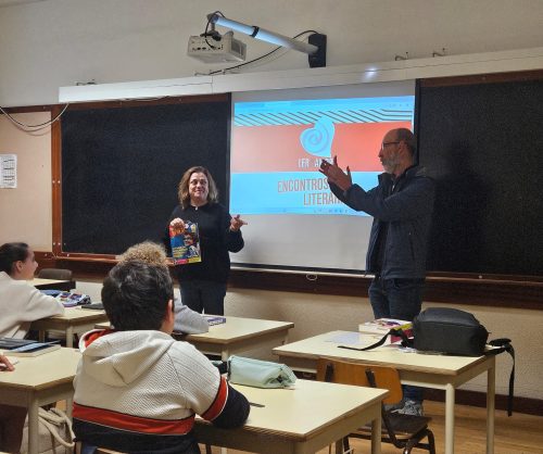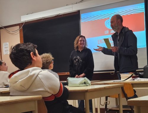 Seguidamente, o professor André falou da sua experiência como leitor, exemplificando com os livros: Um Espião português em Roma e Se Einstein soubesse, cujo conteúdo resumiu de forma simples para os alunos. A professora Nélia Faria referiu também a sua experiência como leitora, nomeando os livros que a marcaram ao longo da vida, a saber L’Étranger, de Albert Camus e Vou receitar-lhe outro Gato, de Syou Ishida.