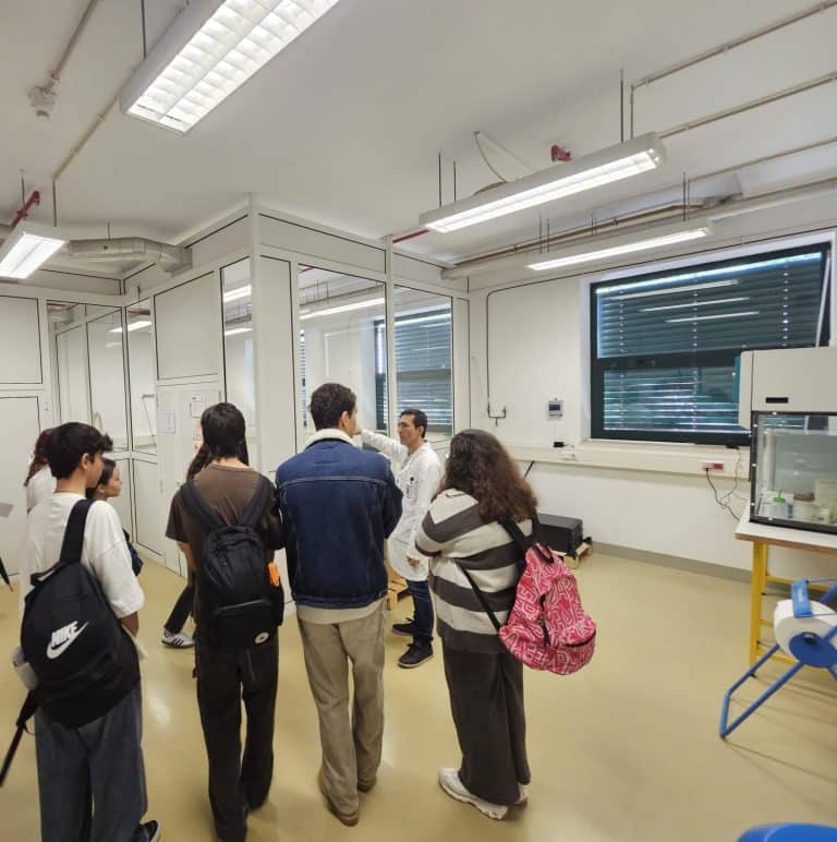 A visita incluiu um percurso por vários laboratórios, onde os alunos tiveram a oportunidade de observar in loco as atividades de investigação desenvolvidas e de contactar diretamente com vários investigadores. Este contacto permitiu esclarecer questões relacionadas com os seus percursos académicos, despertando, assim, o interesse pelas áreas da ciência e da tecnologia.
