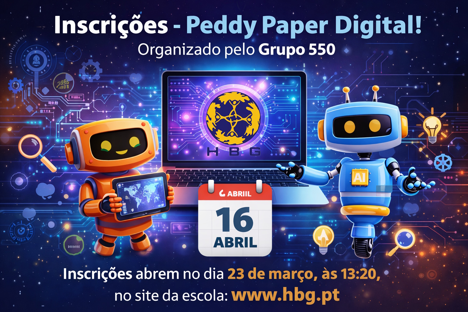 O Peddy Paper Digital é uma atividade dinamizada pelo Grupo 550 – Informática da Escola Dr. Horácio Bento de Gouveia, integrada no Plano Anual de Atividades da escola. Esta iniciativa tem como principal objetivo promover o uso das tecnologias digitais de forma divertida e educativa, através de desafios que estimulam o raciocínio, a criatividade e o espírito de equipa.