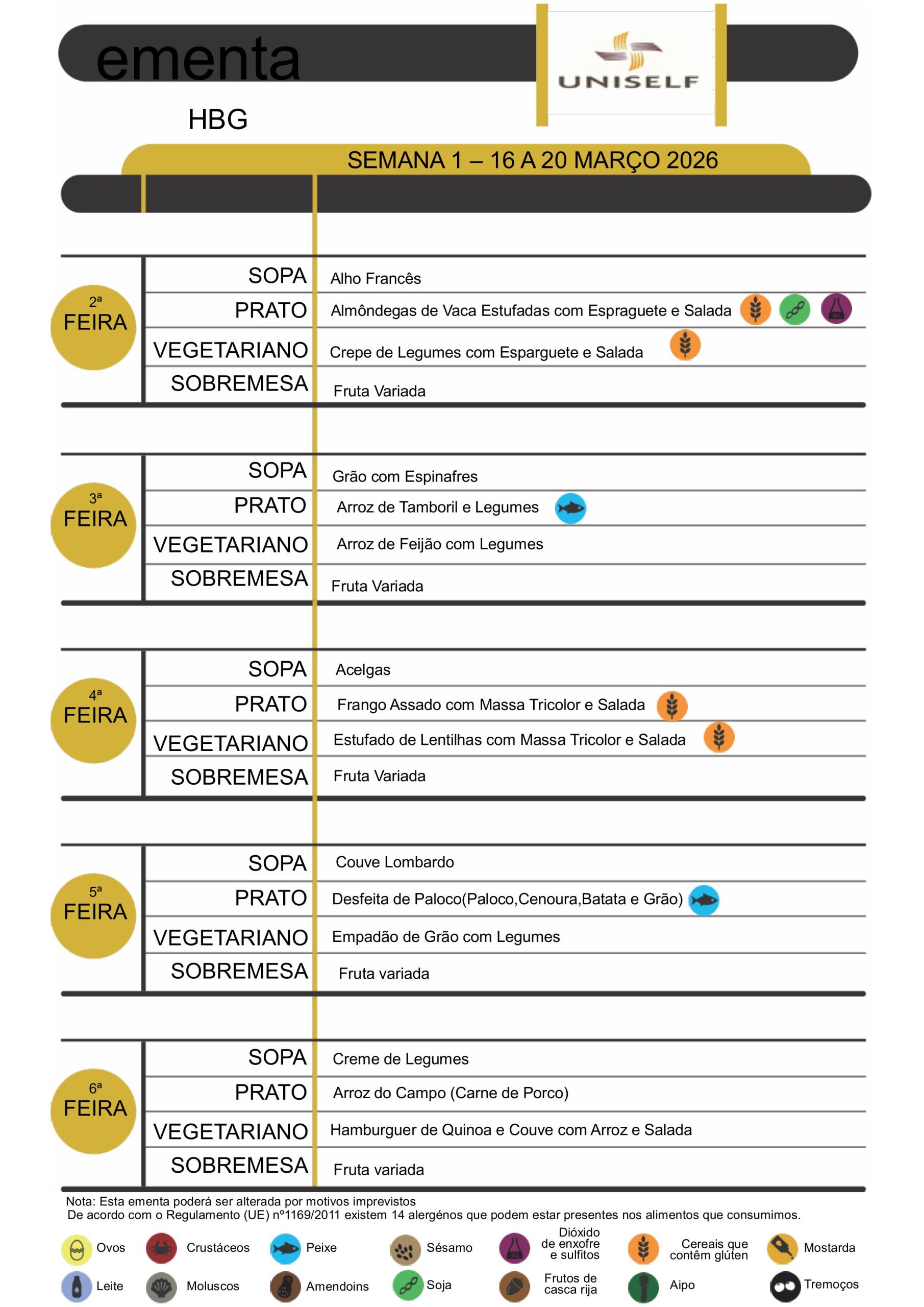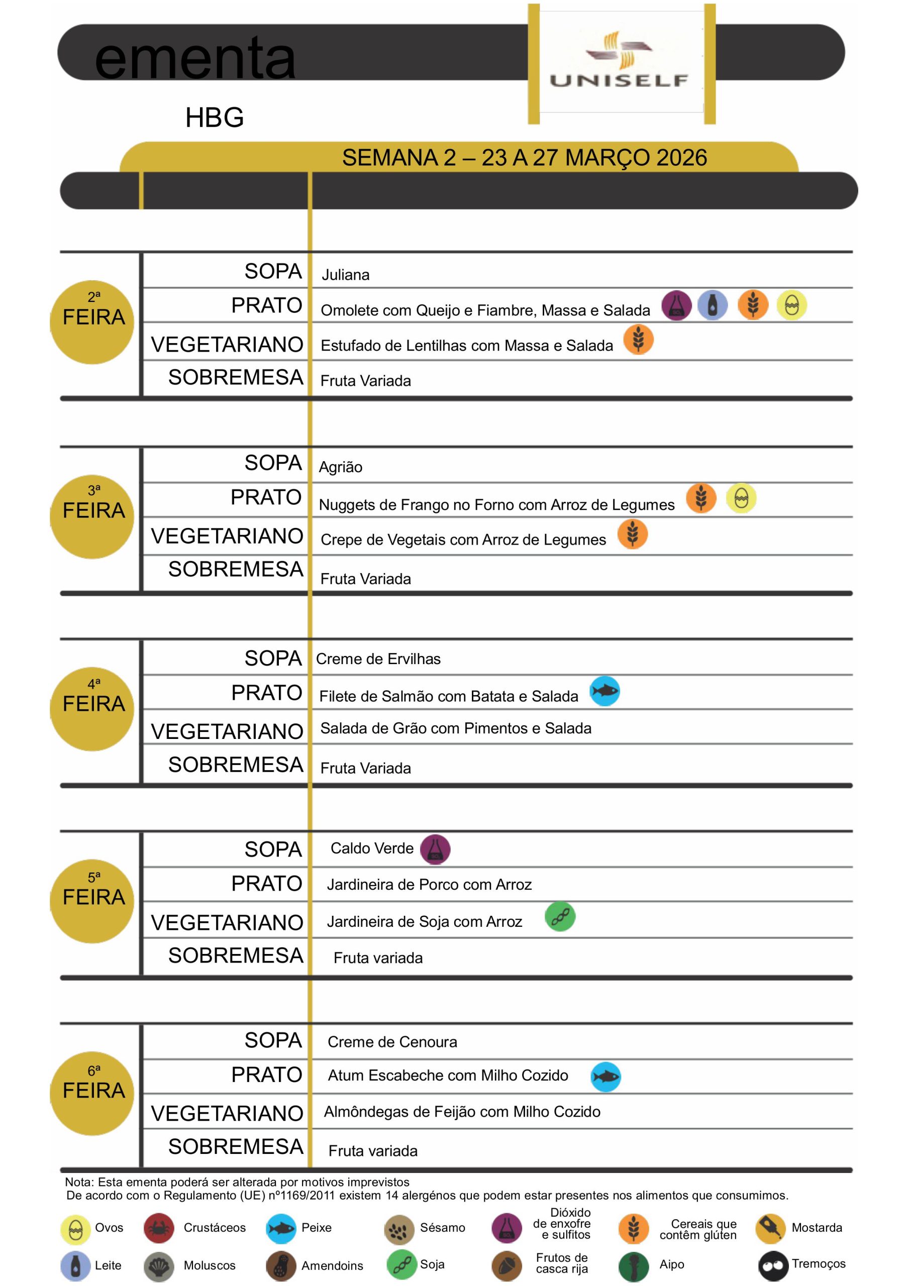 Nota: Perante alterações inesperadas no fornecimento das refeições, a ementa poderá ser alterada sem aviso prévio.