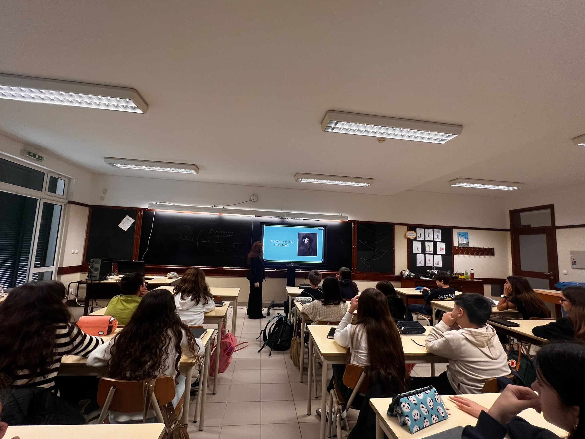 Nos dias 31 de janeiro e 3 de fevereiro, no âmbito da disciplina de Educação Visual, duas turmas do 6.º ano tiveram o privilégio de receber uma convidada especial na sala de aula: a Margarida Gonçalves, ex-aluna da Escola Dr. Horácio Bento de Gouveia e, atualmente, estudante do curso de História da Arte na Faculdade de Ciências Sociais e Humanas da Universidade Nova de Lisboa.