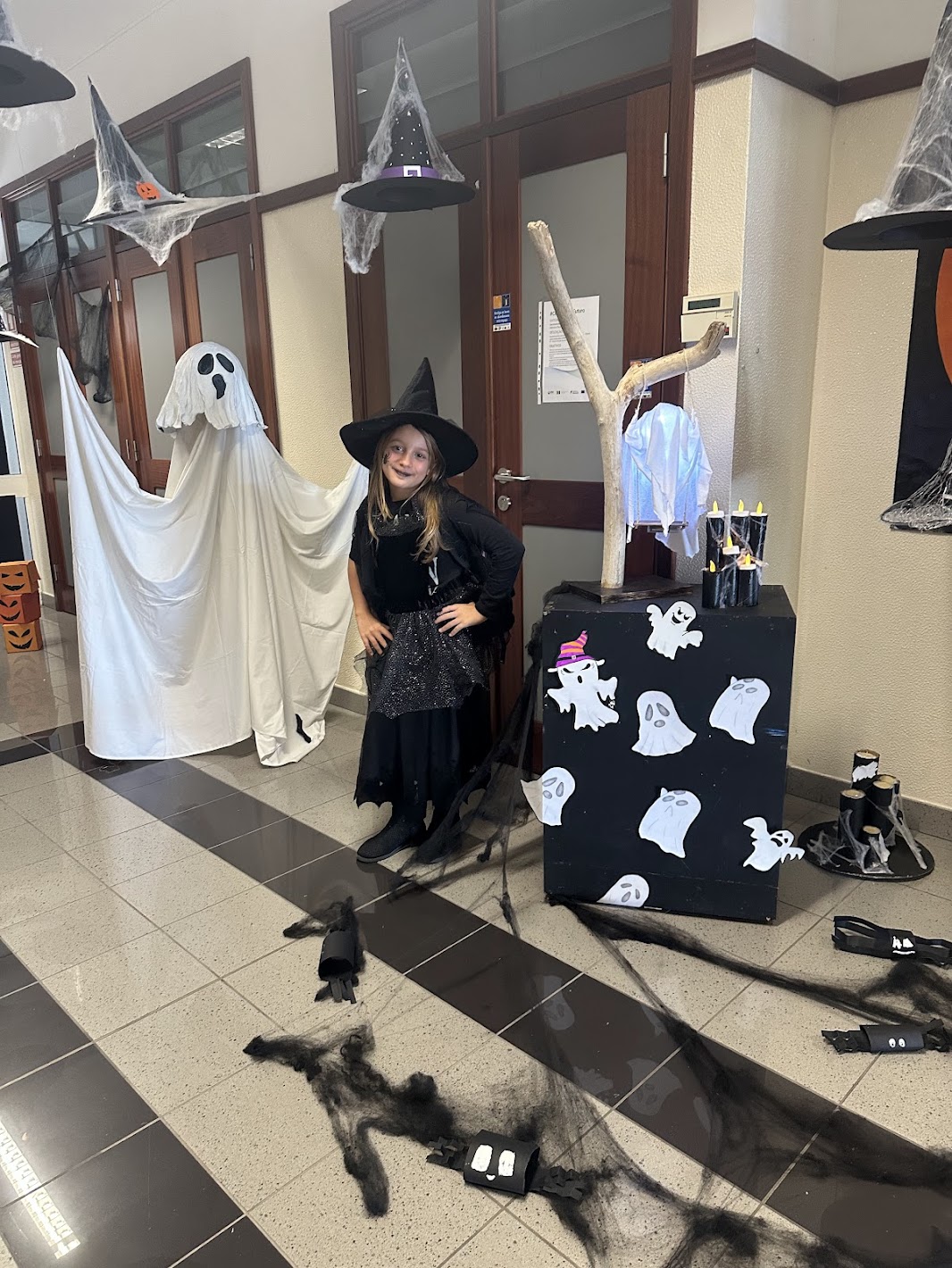 No passado dia 31 de outubro, a comunidade escolar da Escola Dr. Horácio Bento de Gouveia celebrou o dia de Halloween. Neste dia, foi organizado pelos grupos de Inglês do 2.º e 3.º ciclo, um desfile alegórico com alunos do 5.º e 7.º ano que encheu a escola com os mais diversos disfarces e adereços alusivos a esta festividade. Além dos alunos, alguns professores e funcionários contribuíram para este momento, disfarçando-se ou incluindo adornos alusivos na sua indumentária. Foi criada uma instalação alusiva à temática do Halloween que contou com o trabalho colaborativo do Grupo de Educação Visual do 3.º ciclo e da Coordenação das Atividades Culturais e na qual os alunos puderam participar de forma envolvente. Não só o desfile como também a instalação demonstraram que o Halloween é um tema que consegue mobilizar a criatividade e o empenho de todos aqueles que se identificam com este aspeto cultural da disciplina de Inglês, tendo tornado esta celebração numa experiência memorável para todos os presentes.